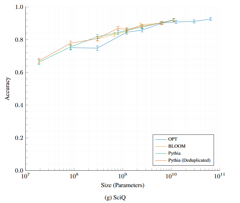 Pythia and Pythia-deduped models compared with OPT and BLOOM.