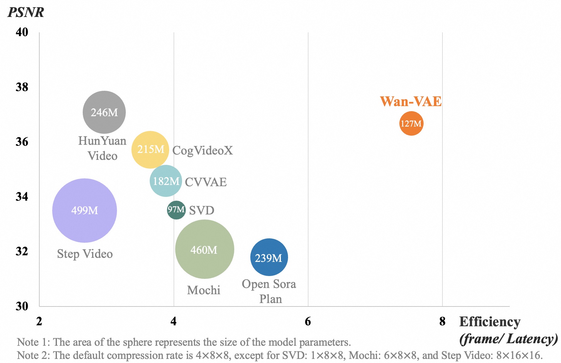 • πŸ‘ Powerful Video VAE: Wan-VAE delivers exceptional efficiency and performance, encoding and decoding 1080P videos of any length while preserving temporal information, making it an ideal foundation for video and image generation.