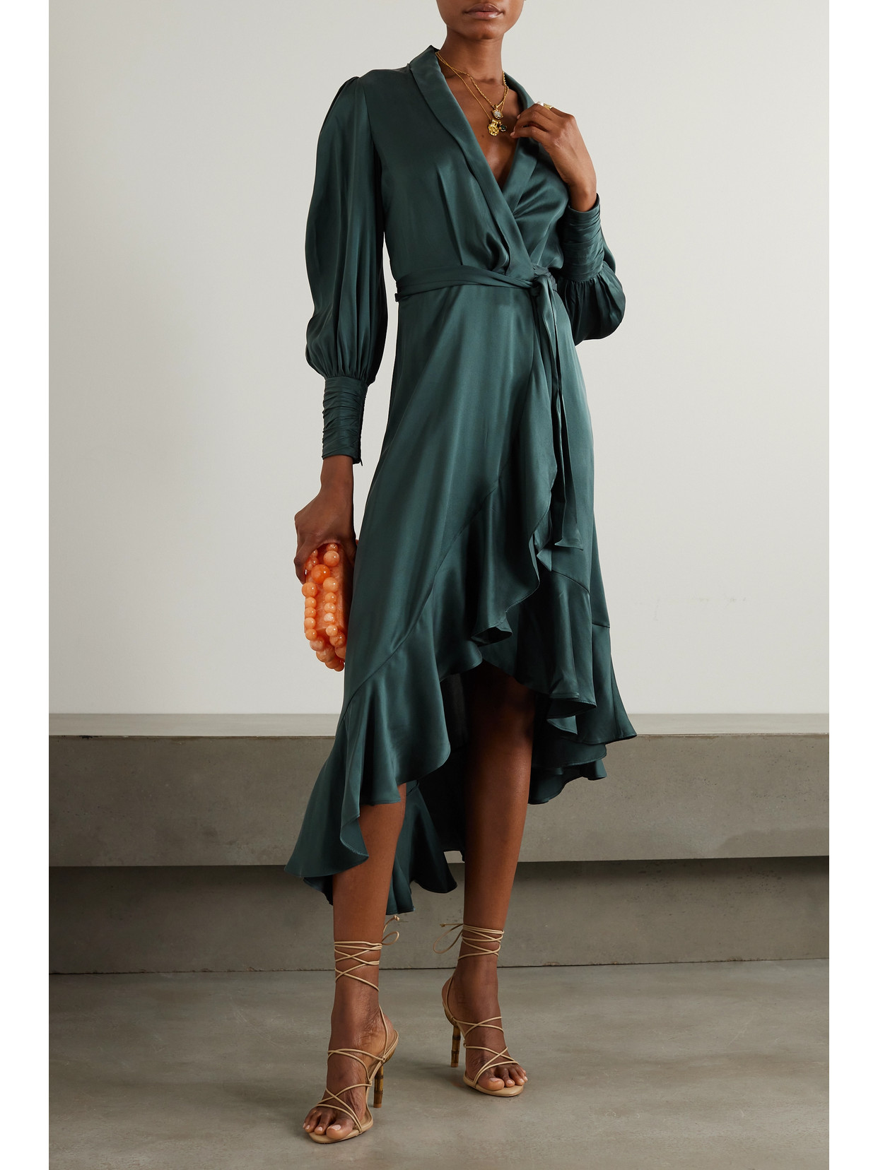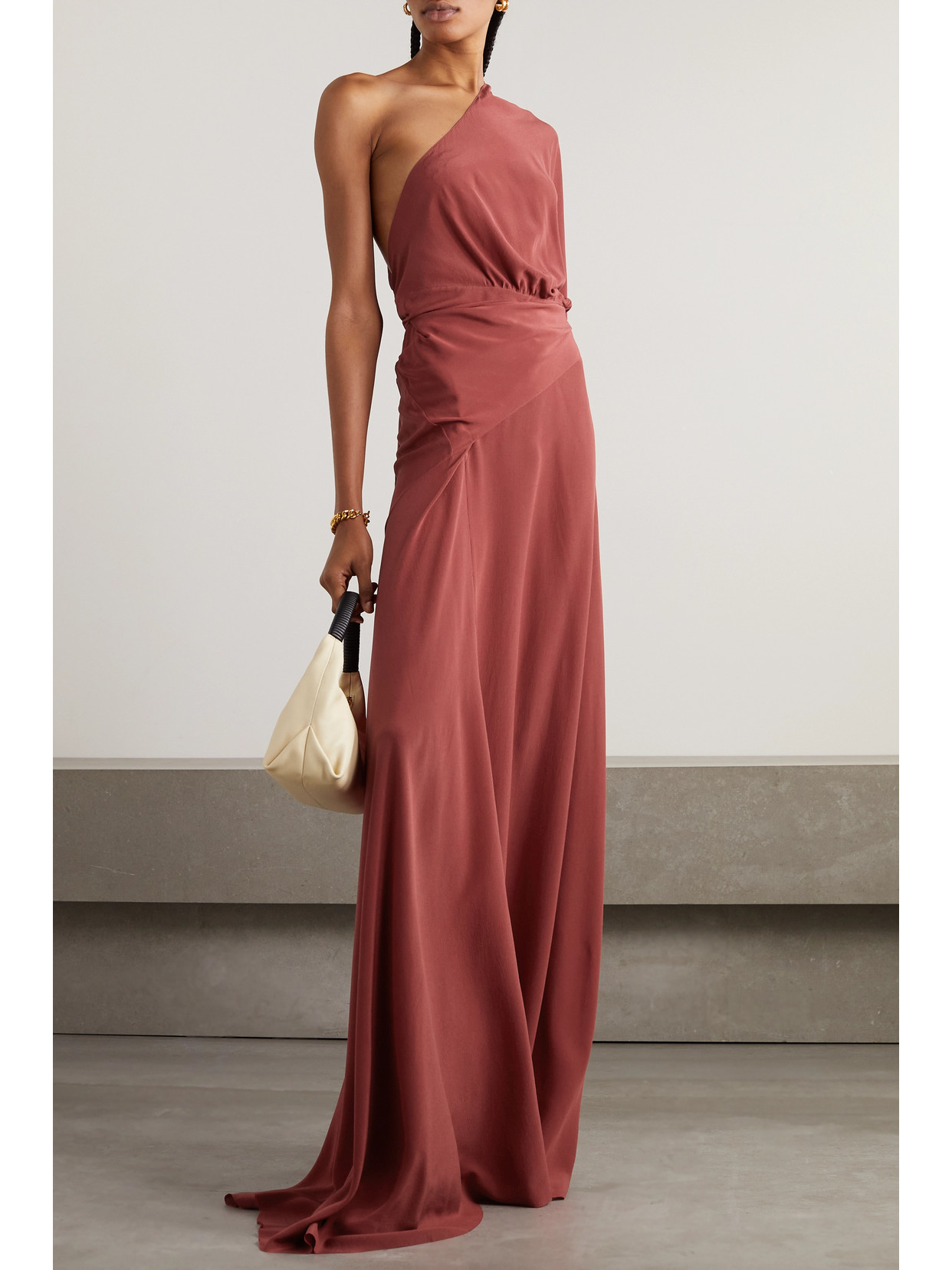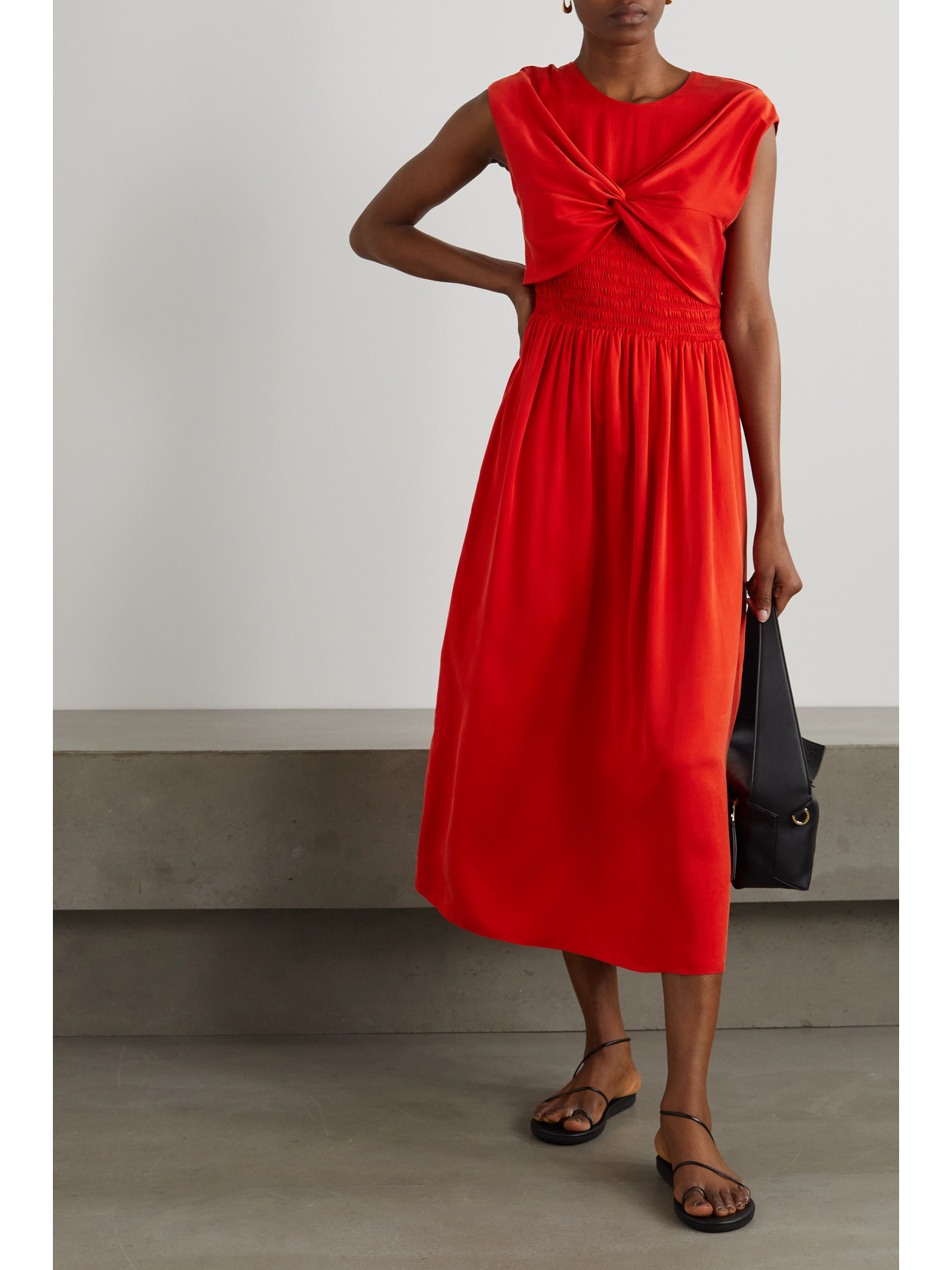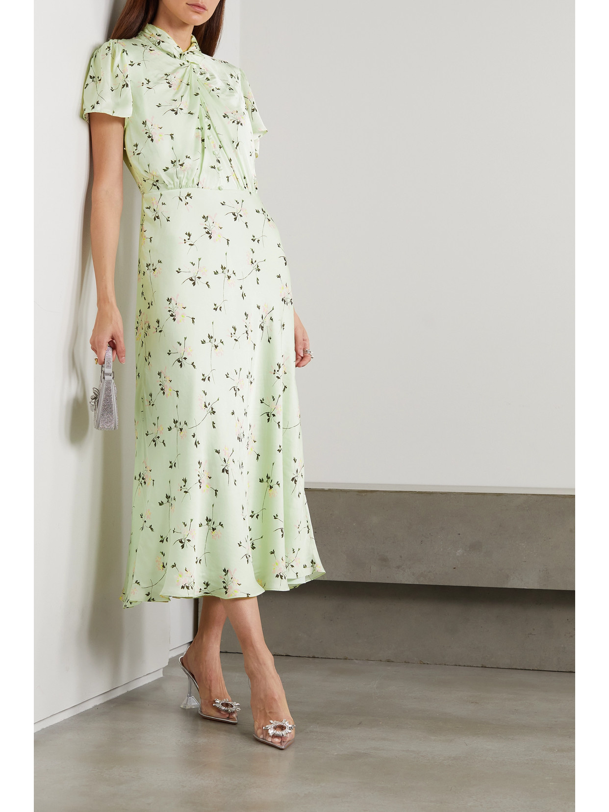 Twist-front floral-print crepe de chine midi dress
