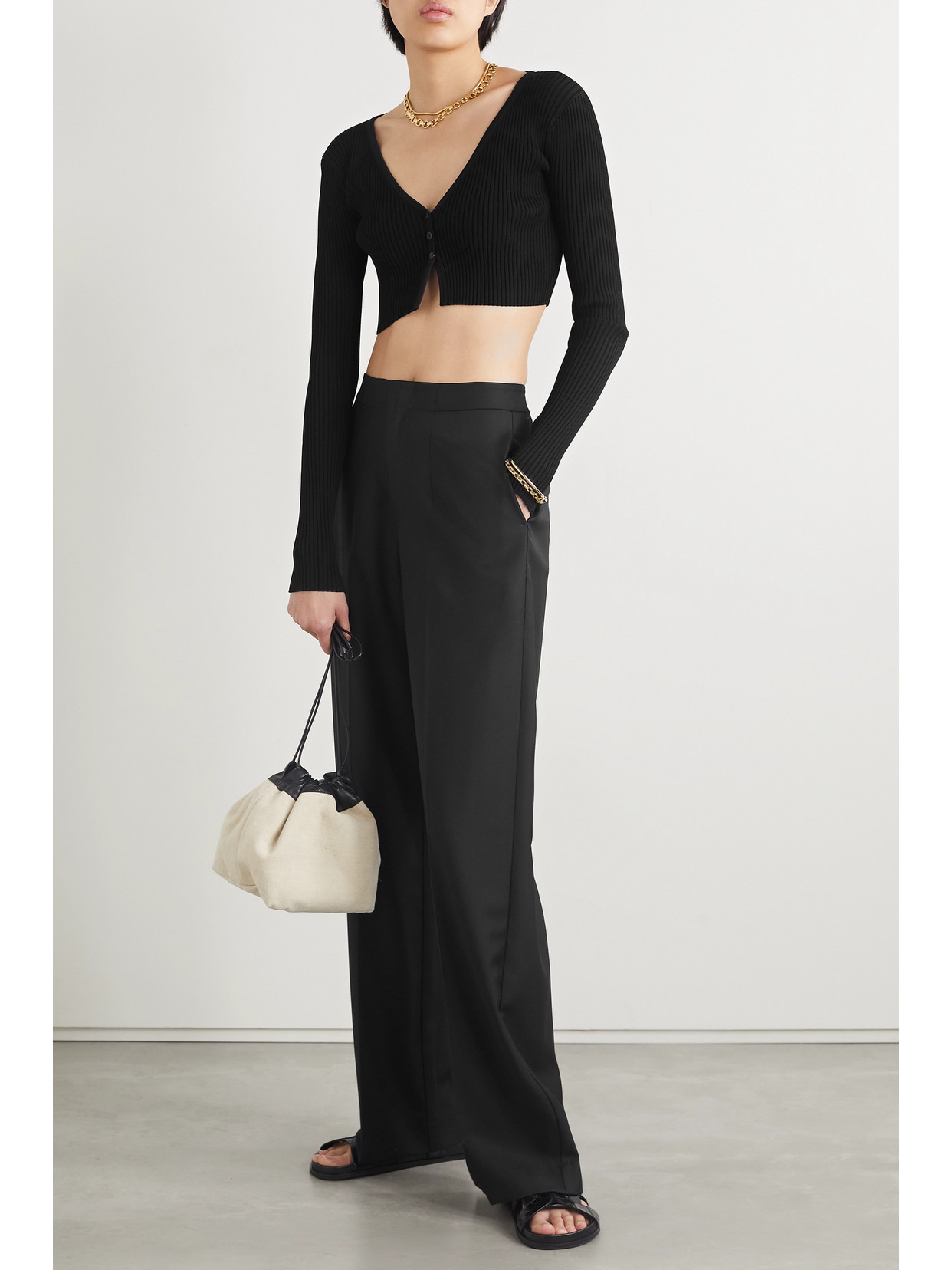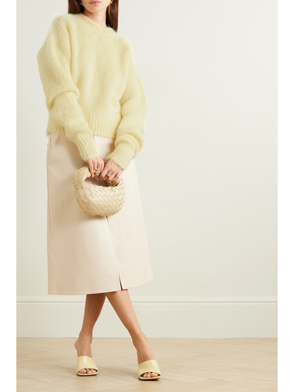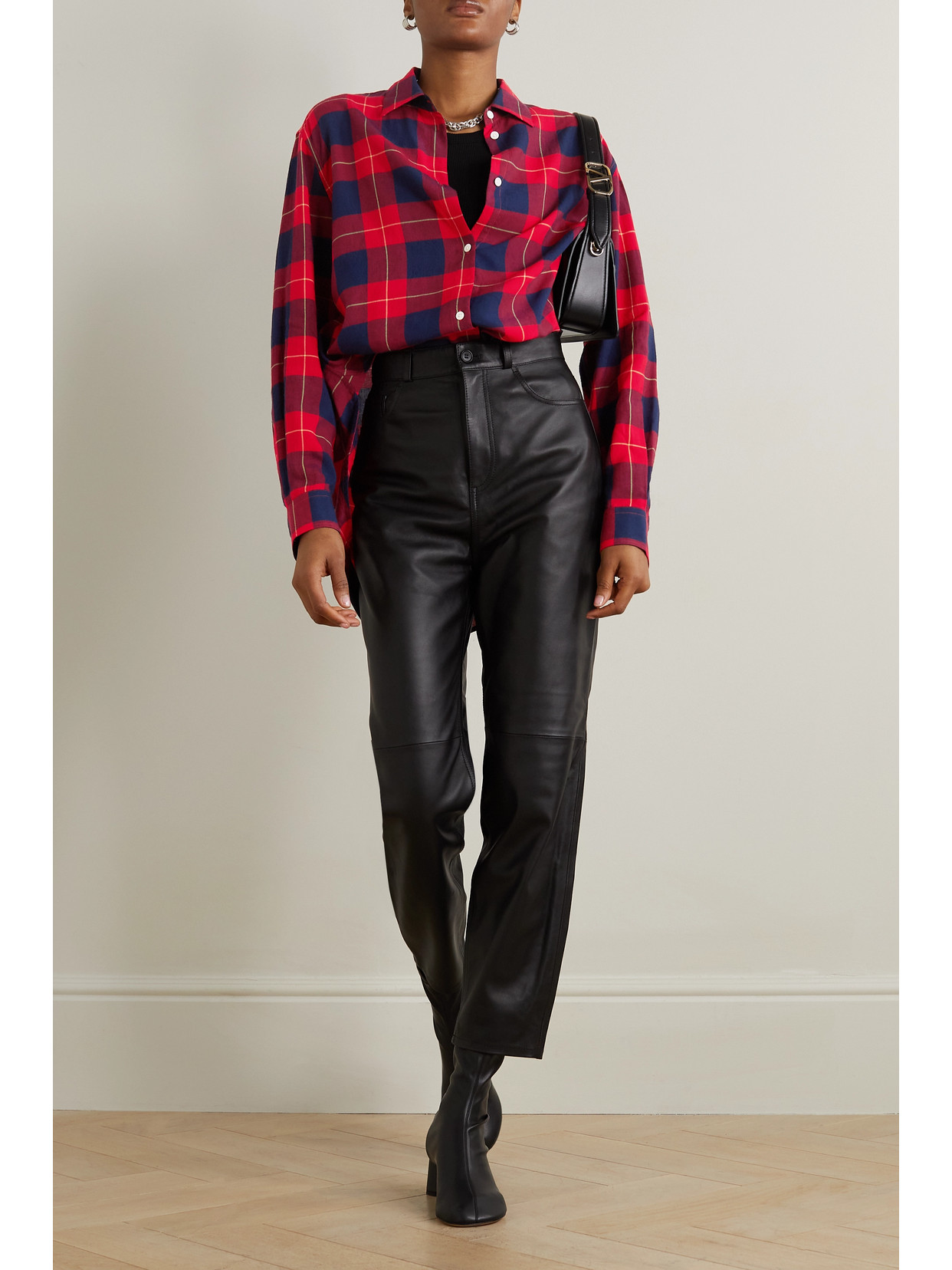 Toile Iconographe cropped leather-trimmed flocked canvas top
