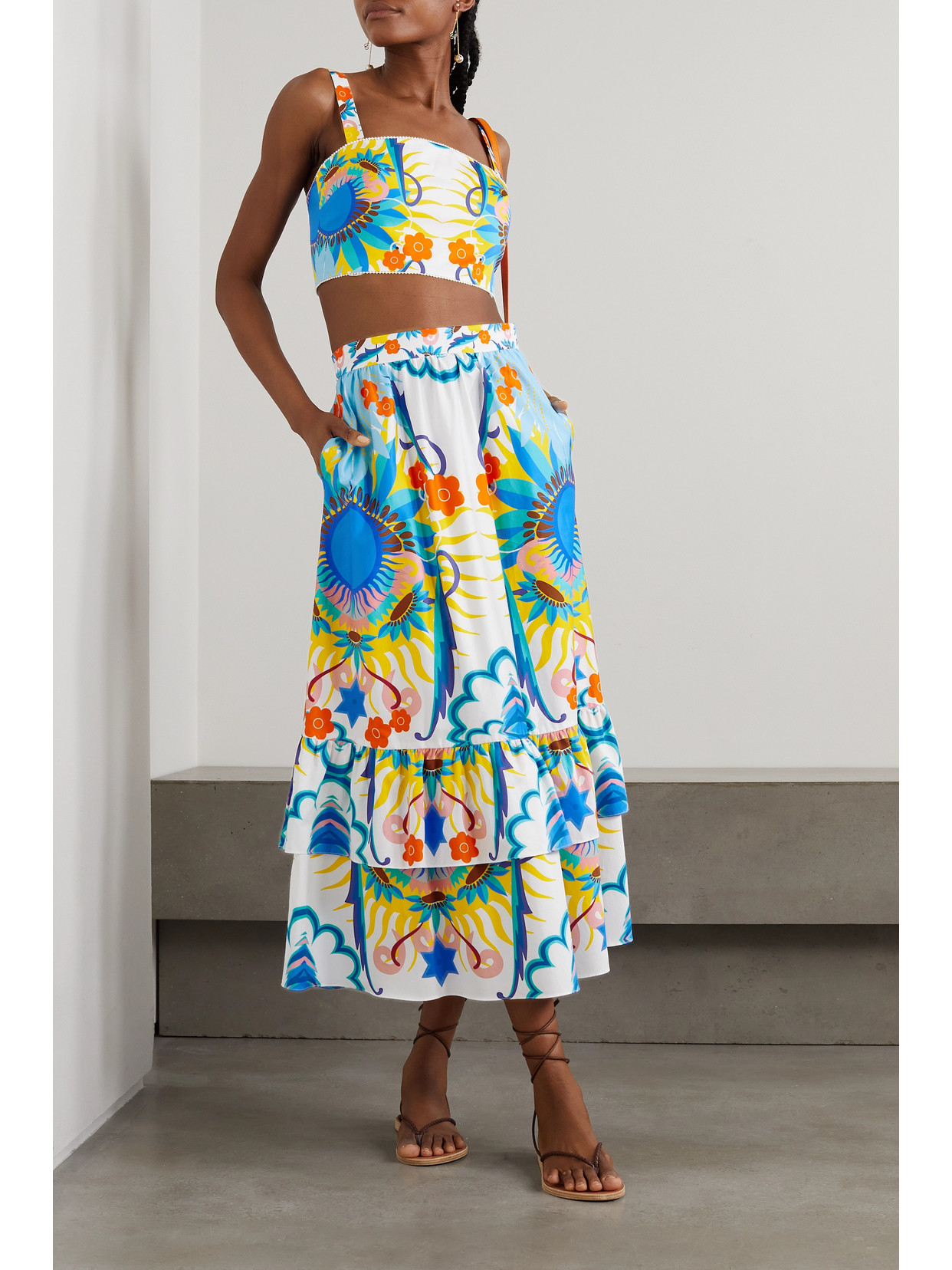 Paulina tiered printed cotton-poplin maxi skirt