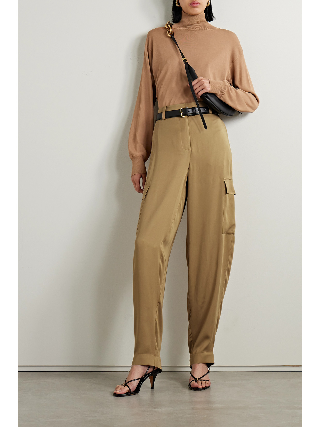 Belted wool mini skirt