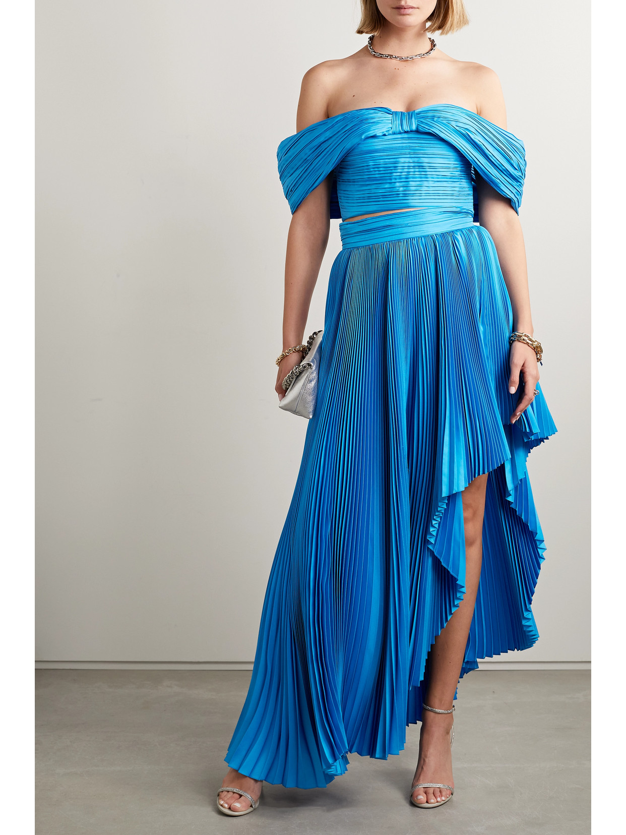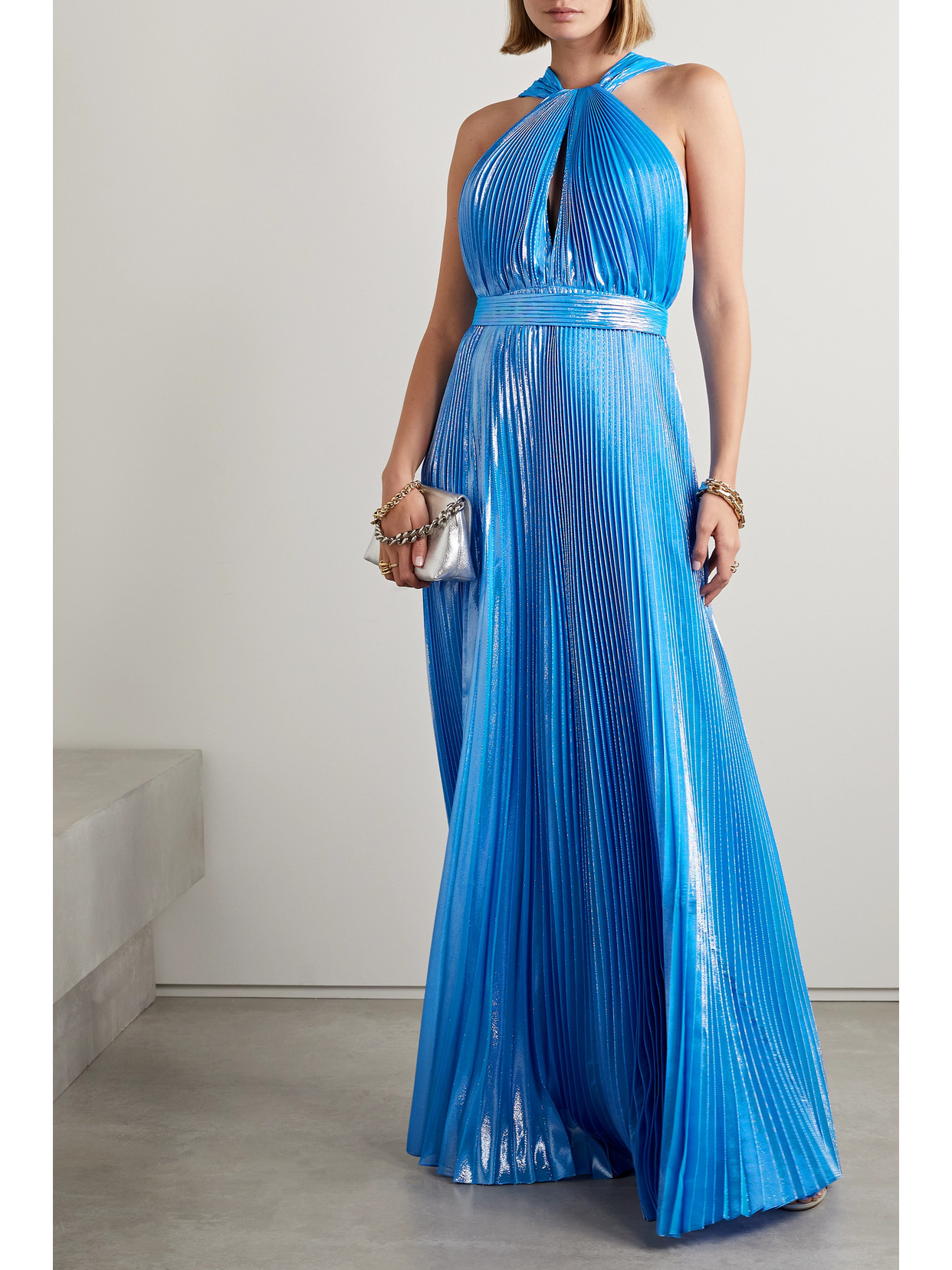 Cutout silk and Lurex-blend plissé-lamé halterneck gown
