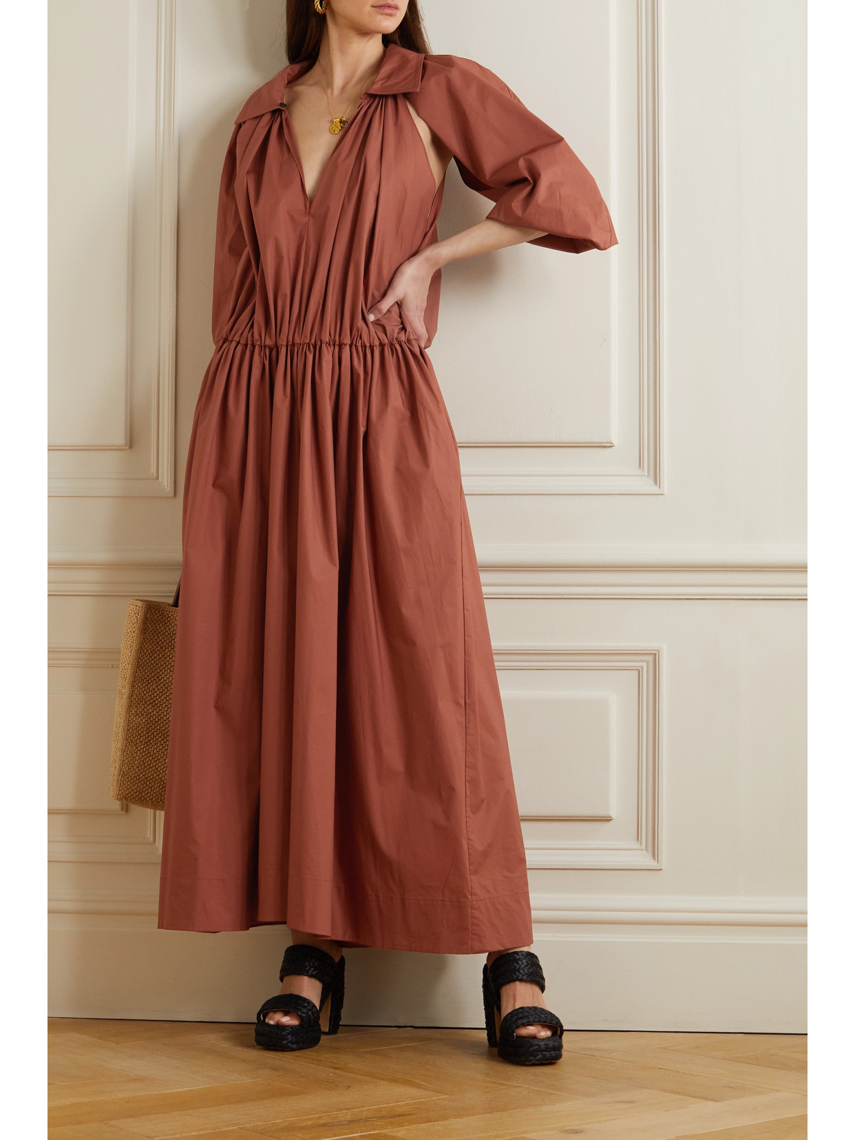 Cutout silk-mikado maxi dress