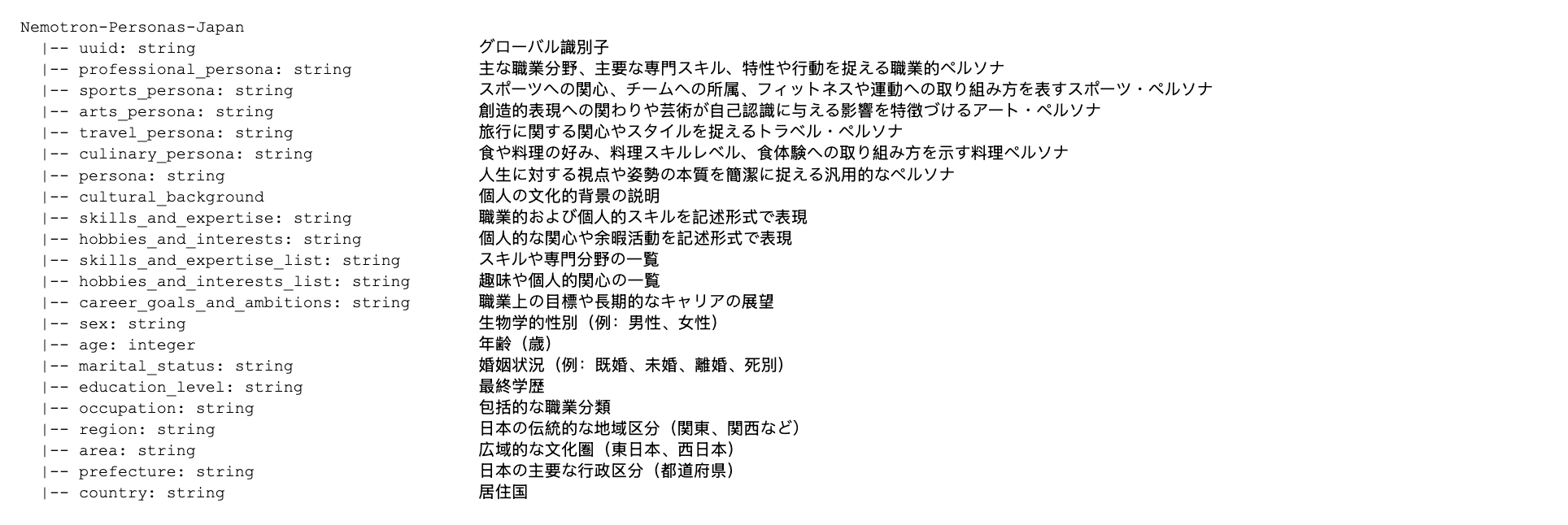 nemotron_personas = load_dataset("nvidia/Nemotron-Personas-Japan", "train")