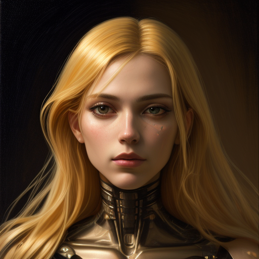 prompt = "Self-portrait oil painting, a beautiful cyborg with golden hair, 8k"