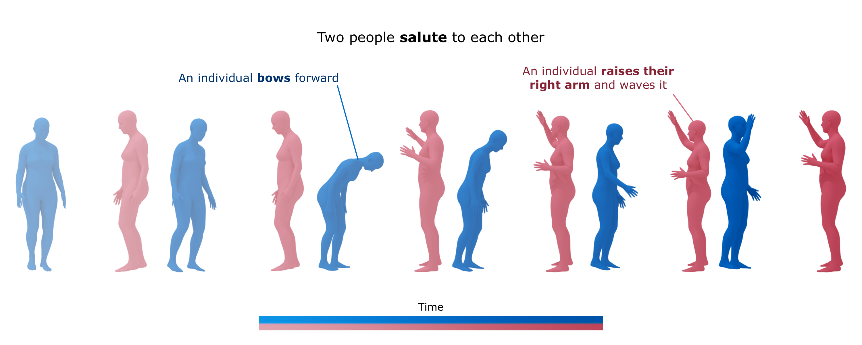 Output (2,T,N,3): the model returns an array with the coordinates of the N joints of each interactant during a motion of T timesteps of duration,
