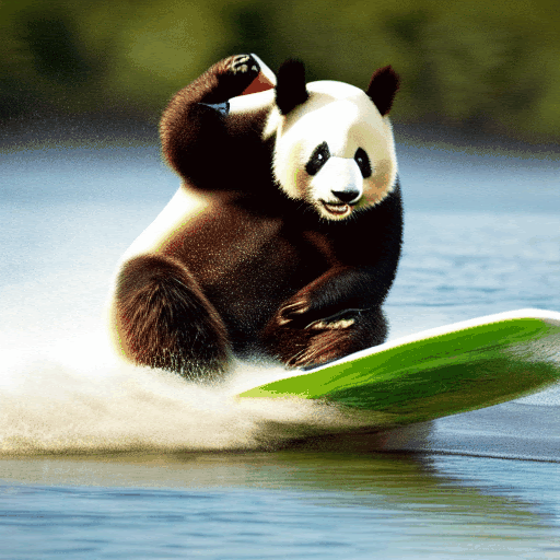 | "A panda surfing on a wakeboard" | "A bear dancing on times square" | "A man is riding a bicycle in the sunshine" | "A horse galloping on a street" |
